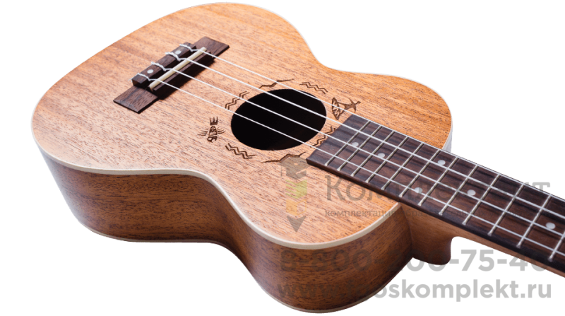 Дерево махагони (или, иначе называемое, красное дерево) недаром ценится в качестве материала для изготовления музыкальных инструментов. Кроме красивой текстуры, естественного блеска и красивого цвета с золотистым отливом, это дерево славится мягким звуком и хорошим сустейном. Что делает данную укулеле превосходным инструментом для аккомпанирования вокалу.