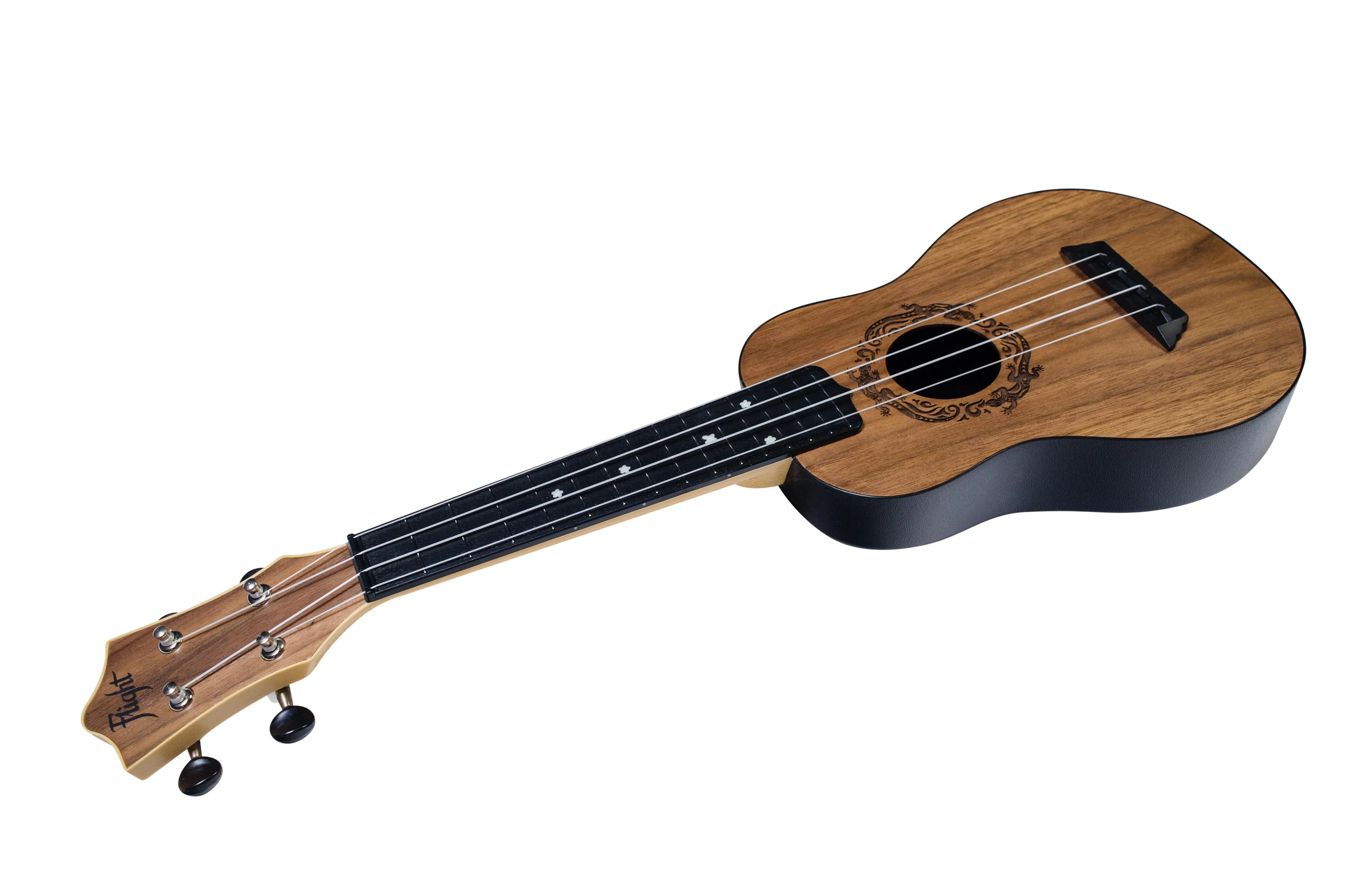 FLIGHT TUS 50 - укулеле Travel, сопрано, верхняя дека орех, корпус пластик, розетка в виде ящериц