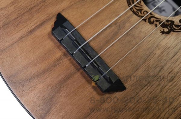 - Дека из ореха.Корпус не полностью композитный. Резонирующая верхняя дека из древесины делает звучание более выразительным и мощным, по сравнению с полностью пластиковыми инструментами.
