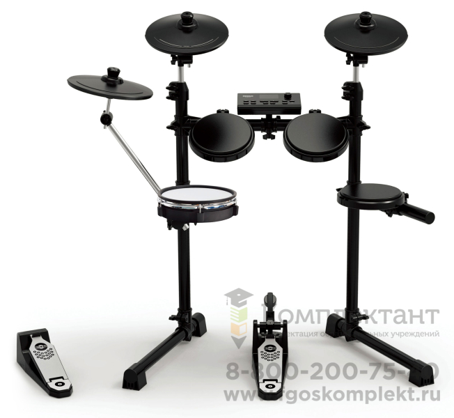 Пэды: малый барабан, тoм x 3, крэш, райд, хай-хэт, педаль хай-хэта, педаль с тригером бас-барабана и модуль управления (электроника).