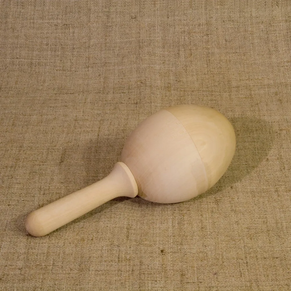 Погремушка большая без росписи представляет собой настоящий музыкальный инструмент без художественной обработки древесины. Для ценителей чистой древесины или желающих самостоятельно расписать свой инструмент.