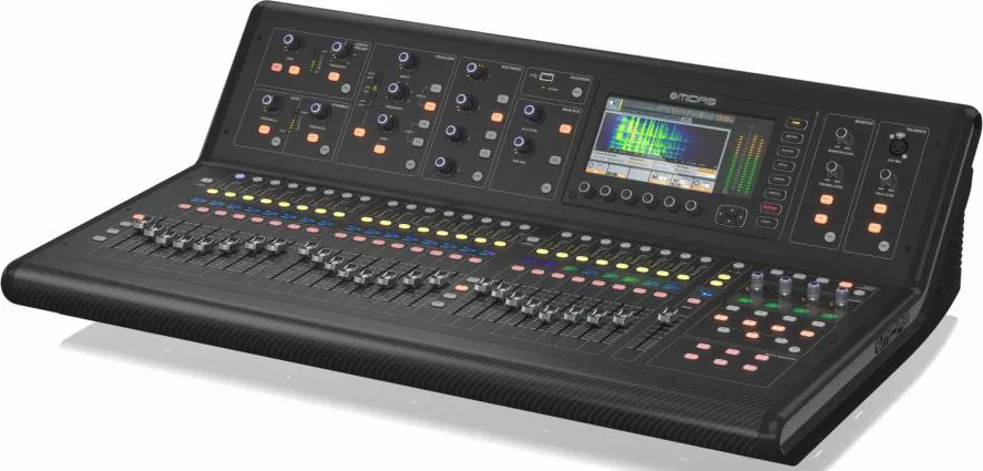 MIDAS M32 Live - компактная микшерная консоль для живых выступлений и студийной работы, имеющая 40 входных каналов. Консоль оснащена 32 микрофонными предусилителями Midas Pro, исключительно долговечными моторизованными фейдерами Midas и 25 синхронизированными фазово-когерентными микшерными шинами. Многоканальные конвертеры Cirrus-Logic, способные работать с частотой дискретизации 192 кГц, обеспечивают динамический диапазон до 114 дБ, гарантирующий отсутствие искажений и шумов. Одним из основных достоинств консоли является простота и понятные алгоритмы управления. Ручные контроллеры дают возможность плавно подстраивать параметры микса, а TFT сенсорный дисплей позволяет получать подробную информацию. Микшер оснащен встроенным процессором эффектов, предназначенным для замены внешнего процессора, что сокращает время настройки и упрощает рабочие процессы. Виртуальный FX рэк включает в себя 8 стерео движков эффектов студийного качества, назначаемых на любой вход, группу или выходную шину. Консоль имеет предустановленный модуль DN-32 Live, позволяющий получить через USB 2.0 32 двунаправленных канала и ДУ DAW. Слоты SD/SDHS дают возможность осуществлять независимую запись и воспроизведение 32 каналов (WAV). Порты AES50 добавляют 96 входов и выходов по кабелю CAT5, что позволяет стейджбоксам делиться сигналом с другими AES50 устройствами.