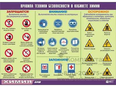 Таблица демонстрационная Правила техники безопасности в кабинете химии (винил 100х140)