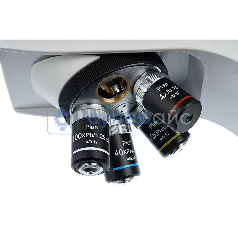 Объективы | фазовые планахроматические, скорректированные на бесконечность: 4 X, 10 X, 40 XS, 100 XS (масляный) |