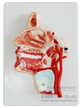 Рельефная модель с детальным изображением внутренние части полости рта и глотки с сетью сосудов и тройничных нервов.