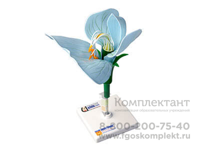 Модель демонстрирует строение цветка гороха. Модель снабжена пластмассовой подставкой. Детали модели изготовлены из пластмассы и проволоки, раскрашены в естественные цвета.