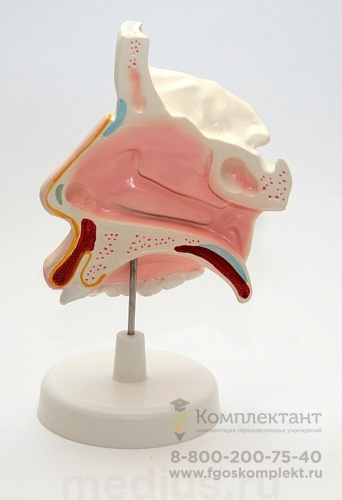 Модель представляет собой часть носоглотки человека, изготовлена из пластмассы, установлена на пластмассовой подставке.