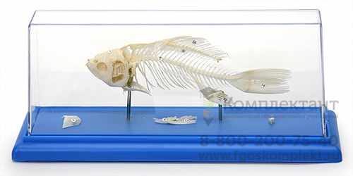 Пособие предназначено для использования в общеобразовательных учреждениях на уроках биологии в качестве наглядно - демонстрационной модели в разделе «Животные», по теме «Строение скелета костистой рыбы». Комплектность 1. Скелет рыбы -1шт. 2. Паспорт -1шт. 3. Упаковочная коробка -1шт. Характеристики изделия Остеологическая модель представляет собой скелет костистой рыбы, смонтированный с сохранением естественного положения тела животного и защищенный от механических повреждений прозрачным пластиковым колпаком. '> Пособие предназначено для использования в общеобразовательных учреждениях на уроках биологии в качестве наглядно - демонстрационной модели в разделе «Животные», по теме «Строение скелета костистой рыбы». Комплектность 1. Скелет рыбы -1шт. 2. Паспорт -1шт. 3. Упаковочная коробка -1шт. Характеристики изделия Остеологическая модель представляет собой скелет костистой рыбы, смонтированный с сохранением естественного положения тела животного и защищенный от механических повреждений прозрачным пластиковым колпаком.