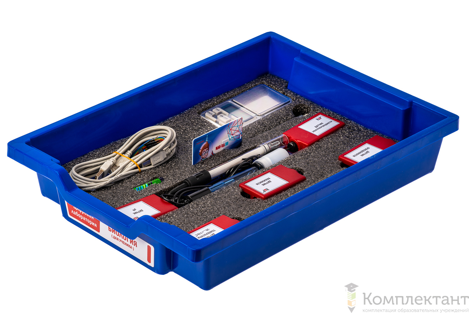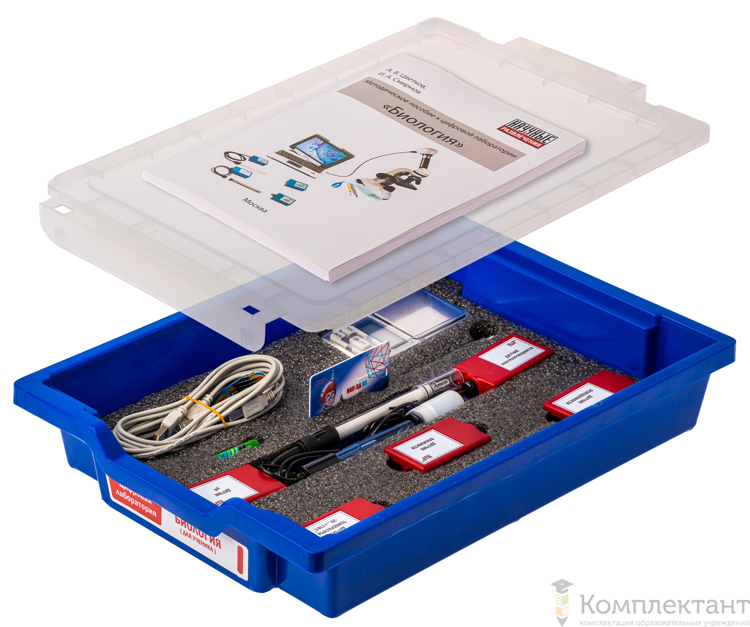 Цифровая лаборатория (за исключением микроскопа и цифровой видеокамеры) укомплектована в пластиковую систему хранения, которая закрывается прозрачной пластиковой крышкой на защелках для обеспечения наблюдения за содержимым. Комплект оборудования и датчики в системе хранения располагаются на ложементе.