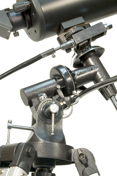 Линзовые поверхности телескопа имеют просветляющее покрытие, которое обеспечивает максимальное светопропускание, а отражающие – защитный слой, увеличивающий срок их службы. Очень компактная и легкая алюминиевая труба установлена на экваториальную монтировку, оснащенную ручками тонких движений и допускающую установку электропривода часовой оси (приобретается отдельно). Такая монтировка имеет специальные координатные круги, с помощью которых, после несложной настройки, можно находить объекты по их экваториальным небесным координатам, а также сопровождать суточное движение объекта вращением только одной ручки. Тренога регулируется по высоте и имеет удобную полочку для принадлежностей, искатель с красной точкой позволит быстро навести телескоп на нужный участок неба. С телескопом поставляются 2 окуляра, имеющие поле зрения 52 градуса и фокусные расстояния 10 мм и 25 мм и дающие с телескопом увеличение 130 и 65 крат. Линзы окуляров изготовлены из стекла и имеют многослойное просветление. Фокусировка выполняется подвижкой главного зеркала с помощью удобной ручки с плавным ходом. Посадочный диаметр под окуляры стандарта 1,25” (31,75 мм) позволяет использовать с телескопом множество других имеющихся на рынке окуляров, помимо входящих в комплект. С их помощью увеличение телескопа может быть поднято до полезного предела в 200 крат. На выходной втулке имеется стандартная Т-резьба, которая, через дополнительное переходное кольцо, позволяет присоединять к телескопу зеркальную фотокамеру и производить съемку Луны, планет и других объектов.