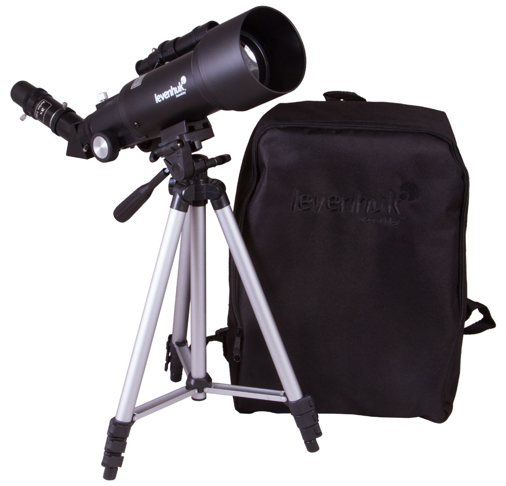 Телескоп Levenhuk Skyline Travel Sun 70 – легкий и простой в управлении рефрактор с хорошими оптическими возможностями. Лучше всего он проявит себя вдали от городской засветки. Телескоп отлично подойдет для наблюдения планет Солнечной системы и поверхности Луны. При минимальной засветке и хороших погодных условиях можно рассмотреть объекты каталога Мессье без детализации, лунные кратеры диаметром до 8 км, звезды до 11,5 звездной величины. Штатная диагональная призма строит прямое (неперевернутое) изображение, поэтому в телескоп удобно рассматривать и наземные объекты.