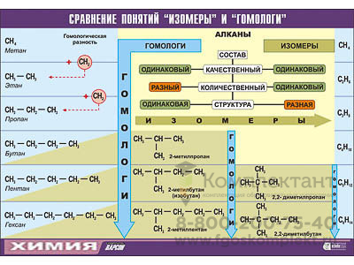 Таблица демонстрационная Сравнение понятий изомер и гомолог (винил 100х140)