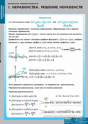 Таблицы демонстрационные "Неравенства. Решение неравенств