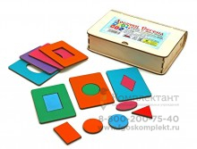 В наборе 18 планшетов с выемками по середине - квадратами, овалами, кругами, прямоугольниками, ромбиками, треугольниками.