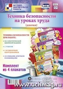 Комплект плакатов "Техника безопасности на уроках труда" (девочки): 4 плаката Формат А3
